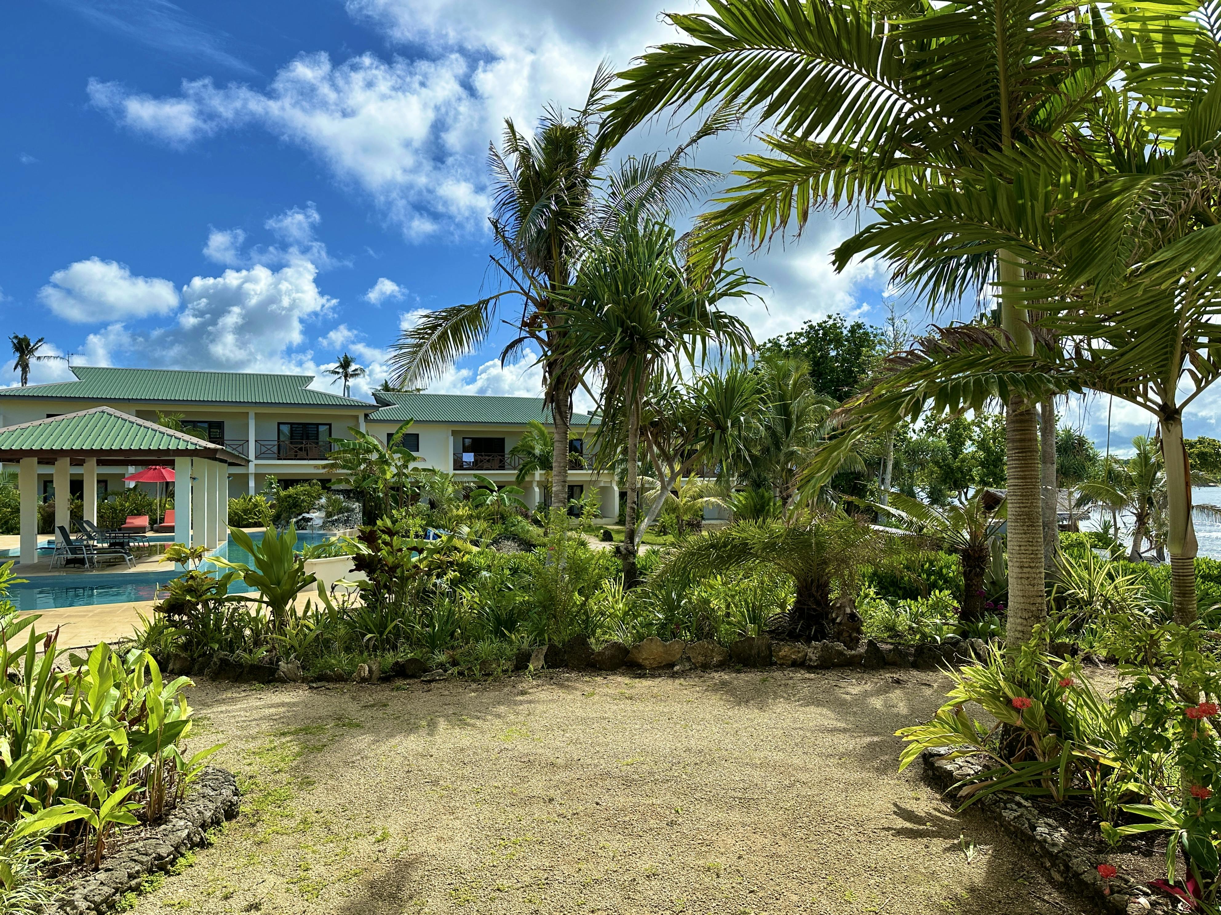 Each room includes 1 king-size bed and 1 single bed with a sitting area, full kitchen, air-conditioning and fans, bathroom with shower, and a balcony with outdoor seating with ocean and pool views.