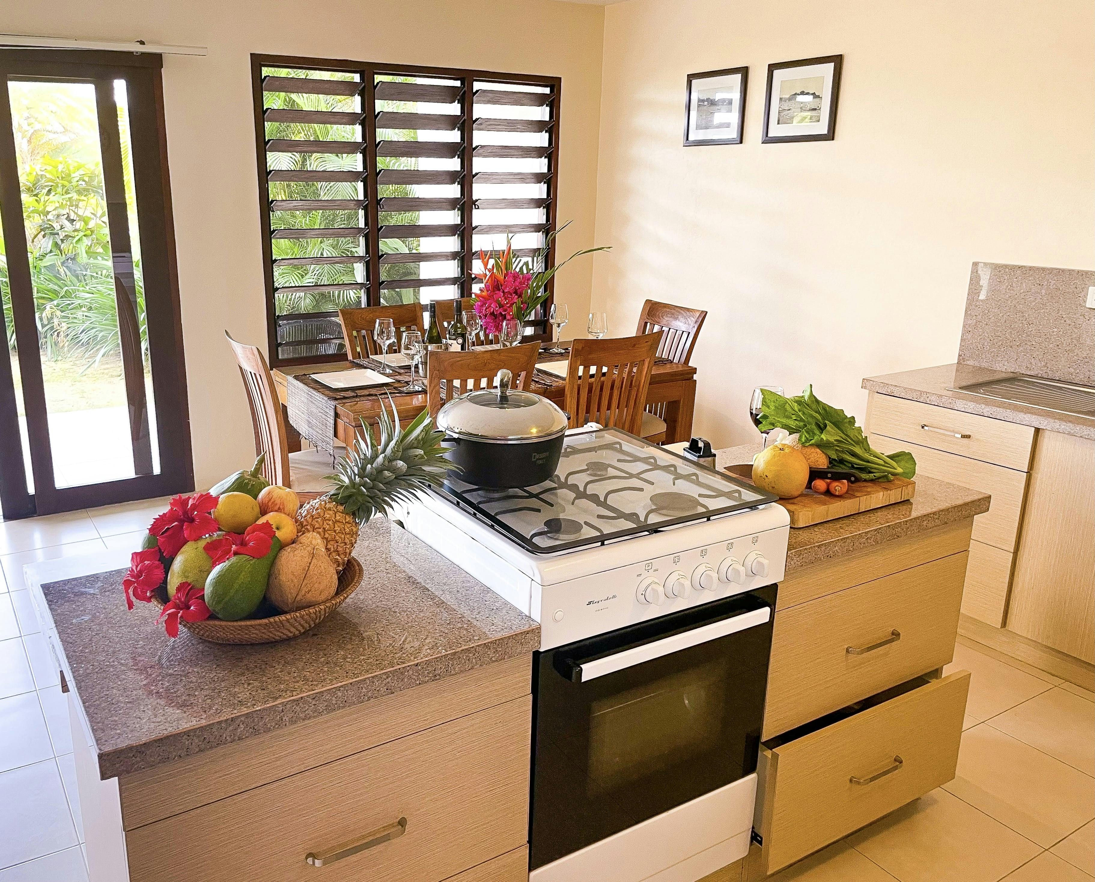 Furnished with beautifully designed timber furniture, each apartment comprises of an open plan kitchen, living and dining areas, air-conditioner, ceiling fan, TV, DVD player and access to free wireless internet.